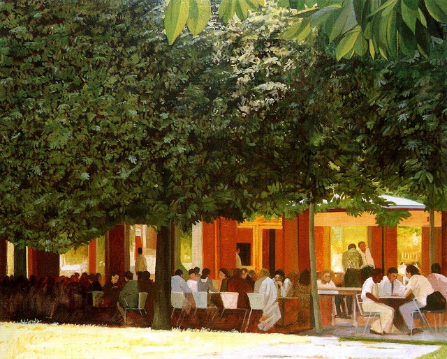 Café Verny en Eté. Huile sur toile.130x162cm.
